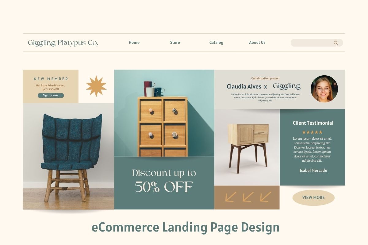 A modern and visually engaging landing page created for an online store. The design highlights featured products with clean layouts, bold typography, and soft color tones that guide the user’s attention. Optimized for conversion, the page combines aesthetic appeal with intuitive navigation to deliver a smooth shopping experience across all devices.